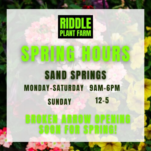 Sand Springs Store Open Spring Hours: Monday-Saturday 9-6, Sunday 12-5